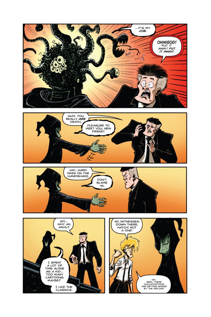 While investigating a suspicious mountaintop murder, Gibson and Hatch learn that the killer is none other than Death himself. But when the Grim Reaper takes a liking to the fellas and hitches a ride back to Area 51, the agents fear that they may be his next victims.